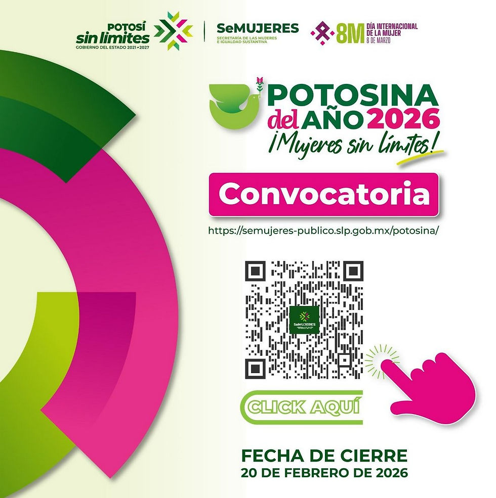 La Secretaría de las Mujeres publicó la convocatoria 2026 del certamen “Potosina del Año” un espacio que visibilizará el liderazgo femenino en las cuatro regiones del Estado.
